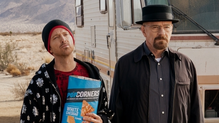 Исполнители этих ролей, Брайан Крэнстон и Аарон Пол, обожают сниматься в подобных забавных роликах. Например, они проворачивали такое для юбилея драмы «Во все тяжкие» в 2018 году. Их дружба в реальной жизни делает каждое совместное появление искрометным, а в этот раз им выпал шанс остроумно пошутить и от души повеселиться. Объединившись с бессменным рулевым «Тяжких» Винсом Гиллиганом и исполнителем роли Туко Саламанки Рэймондом Крусом, они нашпиговали короткую рекламу попкорна кучей пасхалок и отсылок вроде коронных фраз Хайзенберга, синего цвета пачки «Хлопкорнеров» и бешеной реакции Туко после дегустации товара.