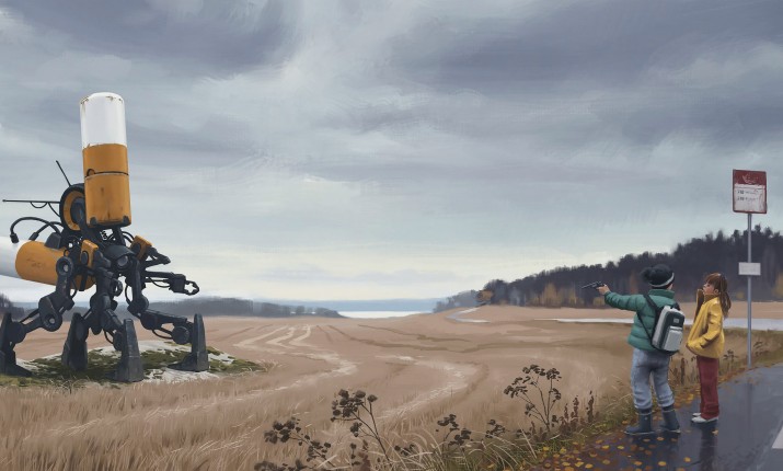 Я бы сказал, что об варианта верны. Саймон поддерживал наш проект с самого начала. Когда мы впервые встретились и поговорили, то сошлись во мнении, что главные герои — это люди, а не роботы. Мне кажется, значительная часть аудитории предпочла бы, чтобы было наоборот, но и Саймон, и я хотели рассказать спокойную историю, пропитанную человечностью. Он поверил в меня и сказал: «Можешь снять в сеттинге моих картин то, что захочешь». Но это, прежде всего, его эстетика, ведь именно Саймон создал удивительный мир Петли. Какие-то элементы мы скопировали с его произведений, но немало придумали сами. Когда мы хотели добавить что-то новое, я обращался к нему за помощью. Саймон разрабатывал внешний вид нововведений, а позже наша команда, занимающаяся визуальными эффектами, развивала его дизайны. Так было, например, когда мы решили добавить персонажа с бионической рукой. Я спросил у Саймона, как такая рука выглядела бы в его мире, и он создал ее с нуля. Я очень рад, что он нашел время, чтобы помочь нам с разработкой новых частей и деталей.